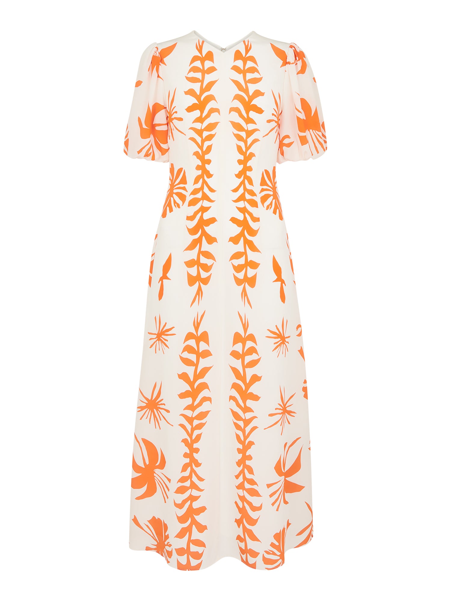 Step into the sun with the Cora Silk Dress, a breezy, chic midi adorned with vibrant prints, perfect for garden parties or leisurely weekend outings. Crafted from luxurious silk, it promises to be a flattering and comfortable addition to your wardrobe.