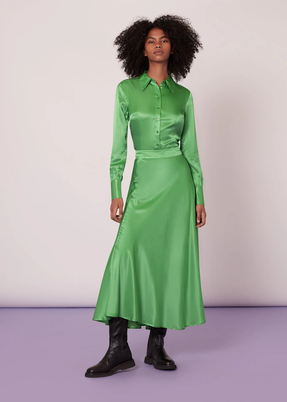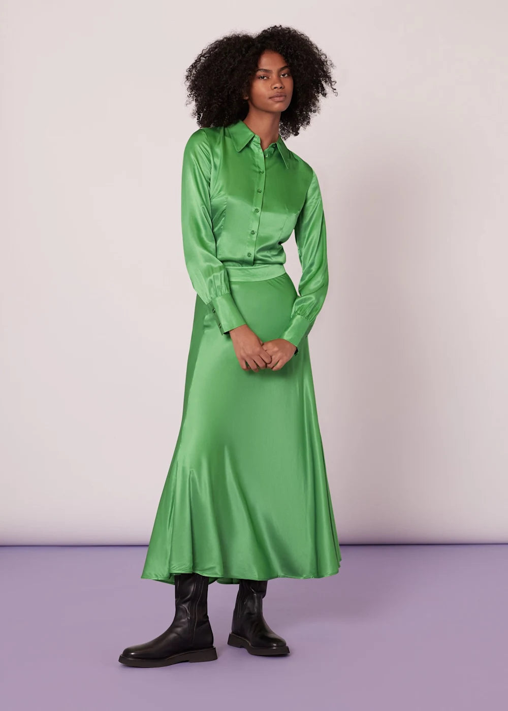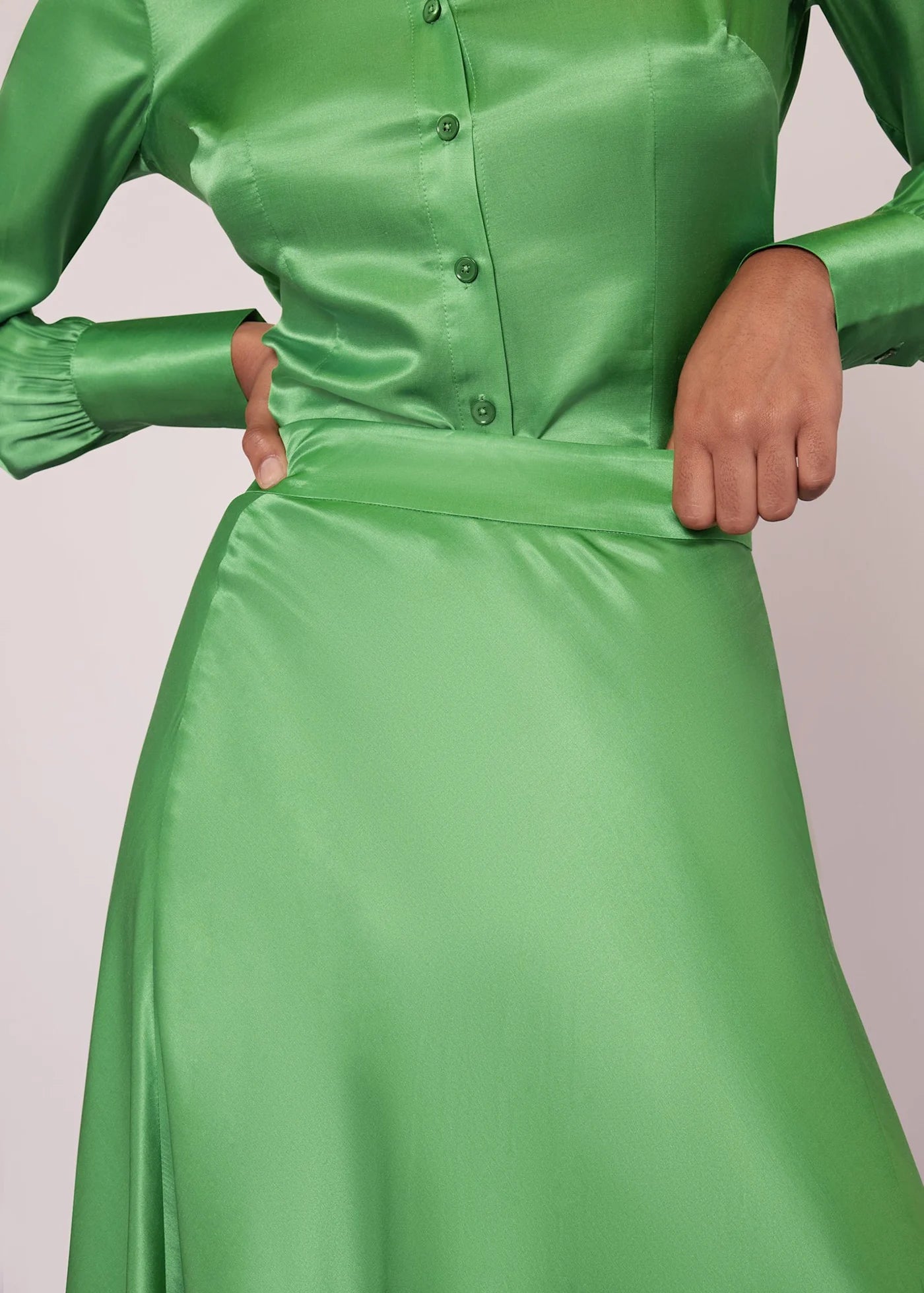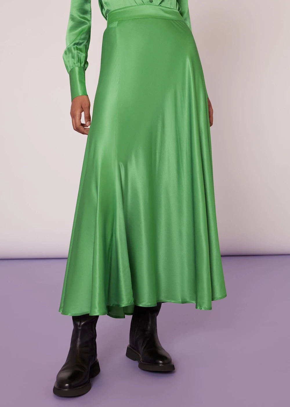 Elevate weekend style or add a splash of colour to an evening out with the Hallie Silk Mix Skirt in vibrant lime. This midi skirt blends the luxury of silk with the sustainability of ECOVERO™ viscose, offering an effortlessly chic silhouette that's as responsible as it is radiant. Perfect for those who covet elegance with a conscience.- Vibrant lime colour