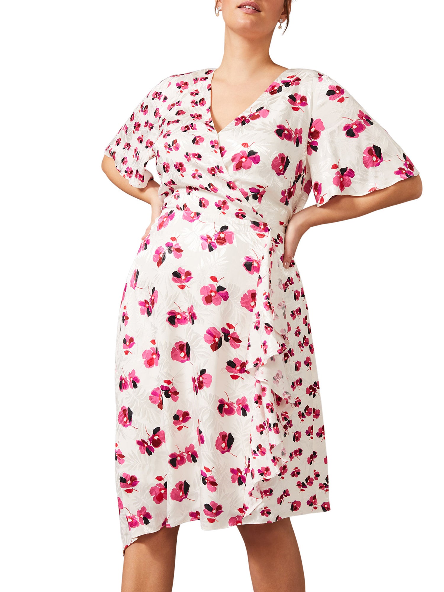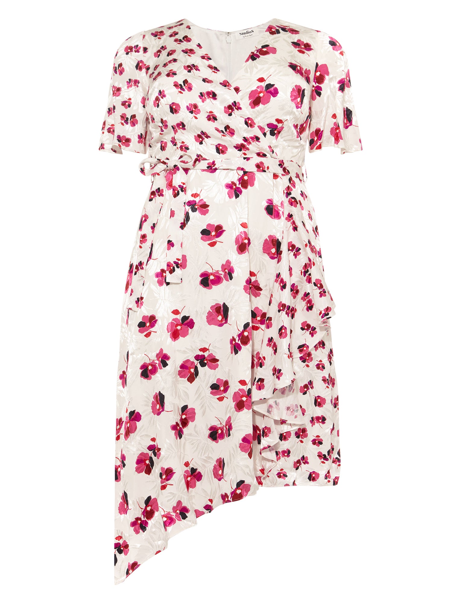 Experience premium plus size style with Studio 8 by Phase Eight. A wrap dress is a wardrobe essential, especially in timeless florals. This versatile piece, crafted from luxurious jacquard and cut in a flattering fit with a waist tie to enhance the silhouette, is one you'll wear again and again.- Wrap dress