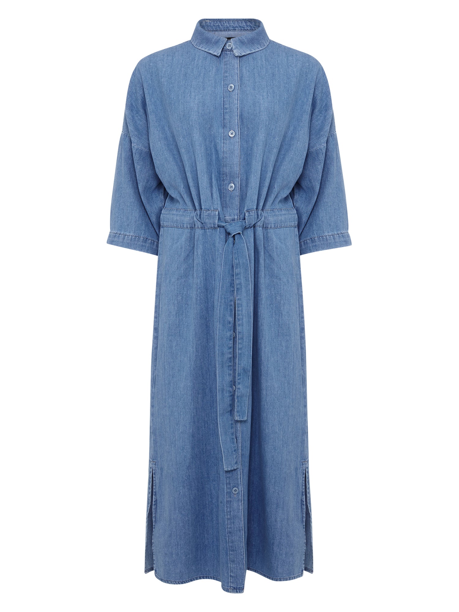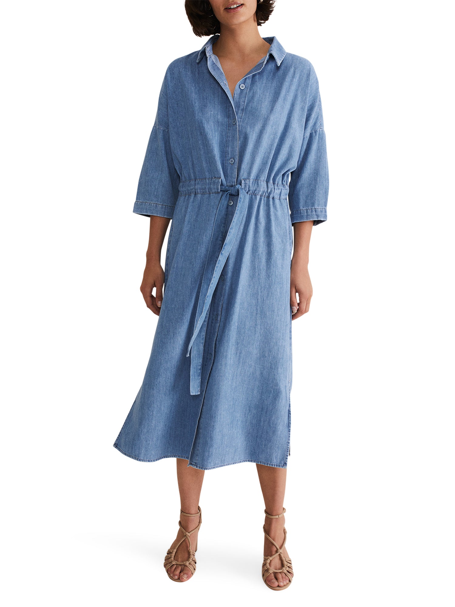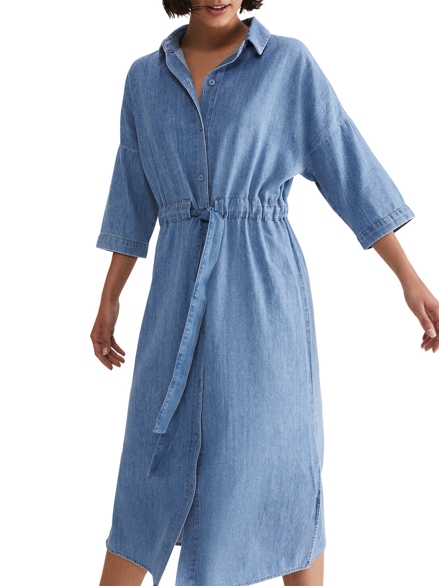Embrace the casual elegance of the Tilda Chambray Dress, perfect for weekend outings and relaxed get-togethers.